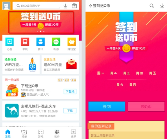图1:应用宝“签到送Q币”活动