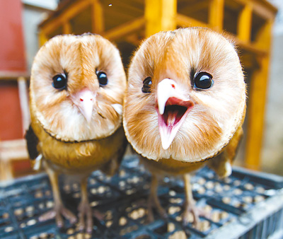 12月20日,在“小天鹅”护鸟协会,被救助的两只国家二级野生保护动物——猴面鹰幼鸟萌态可掬。