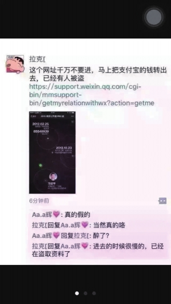 不久,有网友称,点击该应用链接会被盗号。网友发布截图显示,一苏姓网友称,“请告诉我这不是真的。大家周知,玩了一个打开链接微信公开课PRO版之类的东西,可以看到数据。可是我朋友说这个链接是会盗号的”,截图中,一名叫“韩雪”的用户回复称,“很多朋友的微信已经被盗,因为点了这个链接。”亦有网友表示,点击网址后会被盗刷余额宝余额。截图显示,一名叫“拉克”的网友发布朋友圈称,“这个网址不要进,马上把支付宝的钱转出去。”并附有该应用链接。截图中,该网友回复朋友时表示,“当然真的咯,进去时真的很慢的,已经在盗取资料。”这两张截图被网友广泛转发,网友纷纷表示,“不知道是不是真的,但是已经解除手机与余额宝的绑定。”