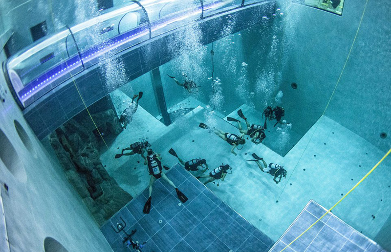 该游泳池名为Y-40,位于意大利威尼斯附近。泳池深131英尺(约40米),与14层楼的高度相当,打破了吉尼斯世界纪录。泳池包含不同深度的潜水区,以及4个供人探险的水下洞穴。不仅如此,泳池还修建了一条水下隧道,令不会潜水的游客们也能感受到徜徉水底的快乐。此外,Y-40还提供丰富的潜水项目,包括人鱼表演、水下摄影和潜水训练等。