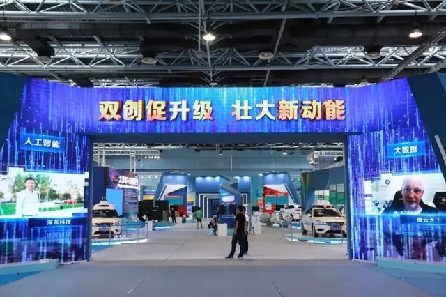 双创促升级展区系统展示了智慧农业、智能制造、新材料、工业互联网、生产性服务业、科技体育等六大板块的科技创新成果。