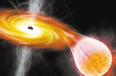 黑洞从周围天体吸积物质的构想图