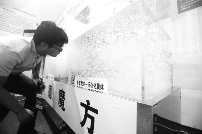 在科博会京津冀展区,高科技“魔方”可用于净化污水 摄/记者 柴程