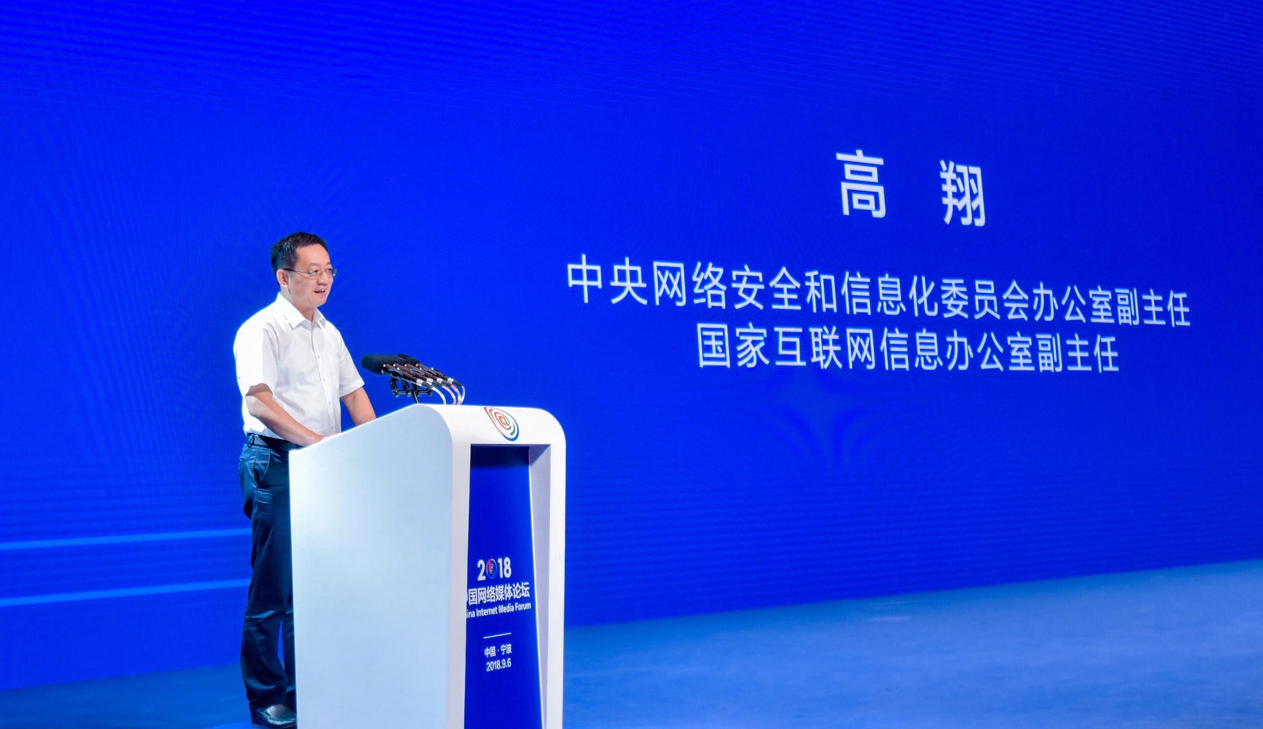 9月6日,以“智能互联时代的媒体变革与发展”为主题的2018中国网络媒体论坛在浙江宁波成功举行。中央网络安全和信息化委员会办公室副主任、国家互联网信息办公室副主任高翔出席论坛开幕式并发表致辞。700多位中央及地方新闻网站和主要商业网站代表、专家学者、运营商代表齐聚甬城,深入学习习近平总书记有关宣传思想工作的重要指示,并围绕如何以总书记重要讲话精神为指引实现智能互联时代媒体“再出发”进行了深入研讨。