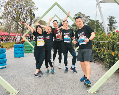 图为陈宁(右一)和员工一起参加深圳南山半程马拉松比赛。(资料图片)