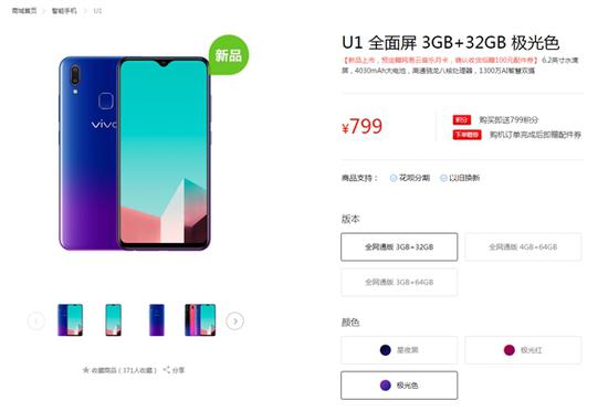 2月19日消息,vivo U1正式亮相,3GB+32GB版售价799元,3GB+64GB版售价999元,4GB+64GB版售价1199元。