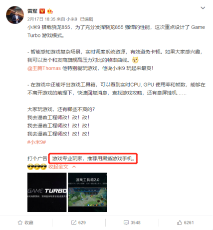 小米两位高层在爆料小米9 Game Turbo功能之后,还不忘向玩家们推荐黑鲨游戏手机,也从侧面说明了黑鲨游戏手机2将同小米9一样,搭载骁龙855、支持Game Turbo功能,这也与网友爆料内容相符。再加上黑鲨的正面双扬声器及其他针对游戏的专属优化,相信会给游戏玩家带来更具沉浸感甚至是更加强悍的游戏体验。