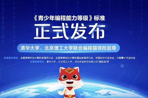 由全国高等学校计算机教育研究会、全国高等院校计算机基础教育研究会、中国软件行业协会、中国青少年宫协会四个国家一级学术团体、协会组织联合发起制定,由清华大学、北京理工大学、编程猫等二十多所国家高等学校、权威机构联合起草的《青少年编程能力等级》标准已经于10月末正式发布。编程猫凭借丰富的教学教研经验参研标准,希望以标准为引领,促进青少年编程教育的可持续发展,迈向科学化、规范化。