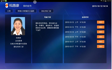 据介绍,此次合作是由趣医网提供预约入口以及挂号补贴服务,由视惠康提供技术、平台支持。用户通过电视端登录“家庭健康中心”服务平台之后,可以在主界面进入“预约挂号”功能选项,选择相应的就诊时间、地点、医院、医生,完成电视端在线预约。服务平台会在预约完成后通过短信形式提醒用户,届时用户在医院现场只需凭借预约短信以及身份证便能完成挂号就诊,省去了传统就诊过程中排队等待的时间。