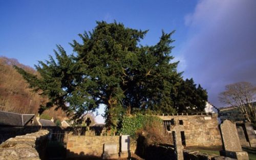苏格兰佩思郡一棵古树千百年来被认定为“雄树”,近日突然结出果实。(网页截图)
