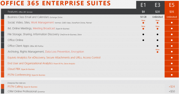 微软日前面向企业用户推出了新的Office 365订阅服务E5,可为用户提供所有的Office 365新功能。Office 365 E5的价格为35美元/月(约合人民币223元/月),当中包含Skype for Business的新功能,比如向数千名员工广播电话会议,或是让用户向软件管理的群组电话会议发起通话。