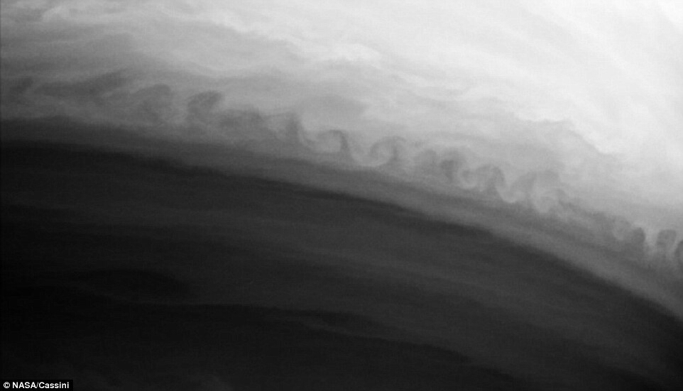 图中的波是克赫波,产生在像风这样的快速流体穿过速度较慢像水的流体的过程中,在地球上同样存在。这张图是木星还是土星上的克赫波?答案:土星。虽然这种波和木星上的非常相近,但这确实拍自木星。这种波在宇宙很多星球上,包括地球均有发现。