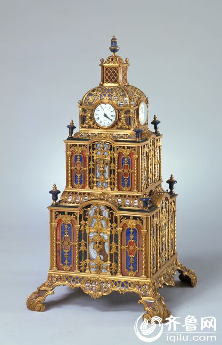 即将展出的西洋科技文物铜镀金亭式规矩箱四面表。图片来源:齐鲁网