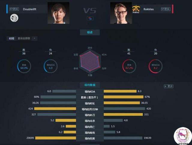 Rekkles所在的Fntic在S5的常规赛和决赛中都表现得很好,尤其是队伍中有huni吸引仇恨,因此队伍的发展方向决定了他的死亡率比较低,KDA很高。补刀经济样样都好,但是就算是这样华丽的数据,他的场均输出还比大师兄少一点,也许这跟他们使用凯南一些奇怪和功能型ADC有关。