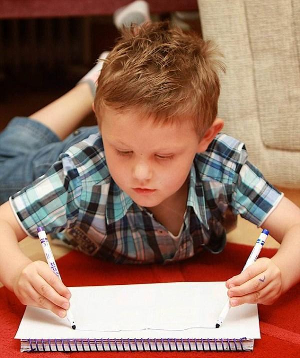 我们都知道,完成一项工作往往需要两只手的分工和配合,比如说吃饭,运动;然而在英国的萨里郡,有一名四岁的小男孩伊桑(Ethan)却有一个怪毛病。他长着一双罕见的“镜子手”,当他一只手做一个动作时,另一只手也会重复同样的动作;不仅写作业如此,就连吃饭也是!