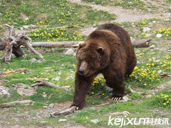 灰熊的牙齿虽然很大,但不尖锐,裂齿不如其他食肉目动物发达。灰熊属于杂食性,行动较缓慢,营地栖生活,善于爬树,也能游泳。