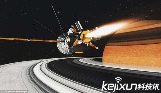 这些照片是卡西尼探测器距离土星210万公里处拍摄的,图中是艺术家描绘的卡西尼号探测器。