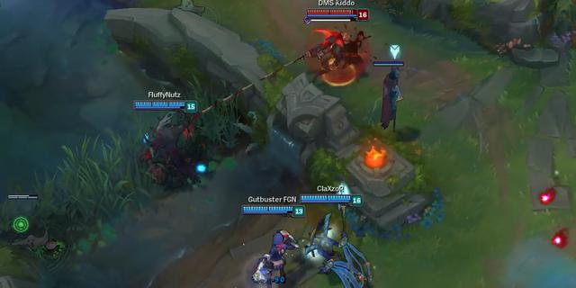非指向性技能可以一直在你附近给敌人制造压力。根据上面的心理博弈,我总结了你的走位和扔非指向性技能的方向跟角度本身一样重要。你必须了解自己身边存在着隐形压力,玩家的技术越高,区域压制的意识就越强。这种压制是你通过攻击和技能范围创造的。机器人,拉克丝,女警和纳尔都很擅长在线上制造这种范围压制。每当你移动,这个范围也会跟着你移动。你的敌人会尽量躲在小兵后面或站得很远来避开你的范围压制。你也应该知道自己的压制范围,并借此来打出风采。机器人的钩子是个很棒的技能,但是在CD时机器人就是个移动近战兵。同样,要是你的压制性技能在CD,你也会失去范围压制,在线上的影响力会变得很弱。玩得好的机器人知道有些时候不能出钩,除非能给敌人带来真正的威胁。他会朝着敌人移动,自己站在小兵和敌人之间,然后出钩,节奏就可以嘲讽敌人,彰显他在线上的统治力了。