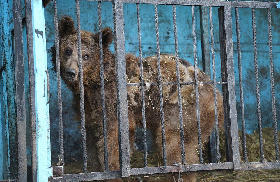 据英国《每日邮报》报道,在世界上最悲伤的动物园,也是世界上最小的动物园里,三只狮子,两只熊和两只豚鼠终日被关在狭小的笼子里,在无聊和饥饿中度过。它们的头绝望的靠在墙上,落寞的眼神久久的凝望着凄凉的笼子外面。