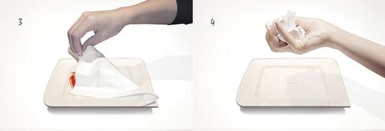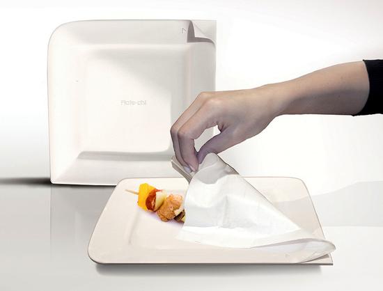 虽然,发明一个不用洗的盘子听起来并不现实,但是曲线救国,这位设计师发明了一个叫Plate-oh的盘子,他是由多层一次性纸压缩而成,用一次只需要撕掉一张纸就可以了,听起来也很方便。