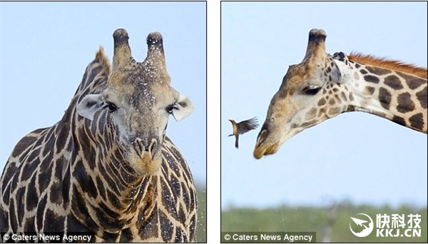 这实在是太污了!长颈鹿突然打喷嚏害小鸟湿身