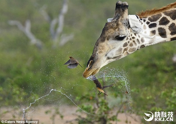 来源标题:这实在是太污了!长颈鹿突然打喷嚏害小鸟湿身