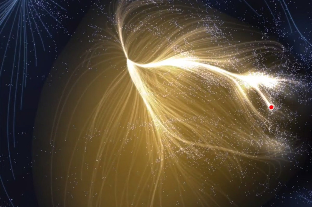 银河系所在的红点处于拉尼亚凯亚(Laniakea)的超星系团中,拉尼亚凯亚意为“无可衡量的天堂”。正如美国天文学家卡尔·萨根(Carl Edward Sagan)在《宇宙》里的名言:“对那些只生存百万分之一年的生物来说,7000万年简直不可思议。我们就像蝴蝶一样,振翅一天便以为那就是一生。”