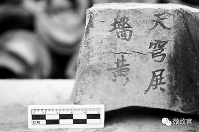 大高玄殿鼓楼发现的“文华殿”瓦,“文华殿”是明代皇太子的东宫所在。还有“天穹殿墙黄”瓦,这应该是天穹宝殿墙上的黄琉璃瓦。专家介绍,这处宝殿原名玄穹宝殿,位于紫禁城内东路,景阳宫东侧。因避康熙帝玄烨讳而改名天穹宝殿,因此可判断此瓦应该是康熙朝或更晚时修缮而补配的瓦件。