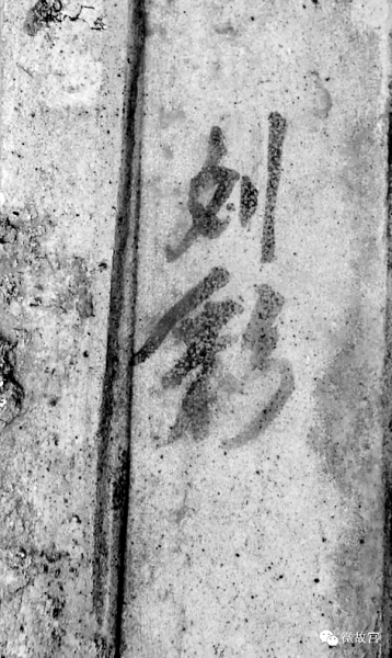 佛教符号出现在道观瓦上。 匠人“刘彩”手迹。