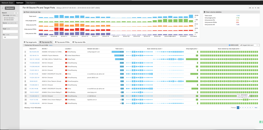 为了更好的解决网络安全、国家安全问题,我们决定率先走一步,推出360威胁情报共享工程,陆续开放自己的数据和能力,今天首先开放的是360全球网络扫描实时监测系统,在这个系统中,可以实时了解全网恶意扫描源,然后对这些恶意扫描源封堵处置,降低系统被攻击的概念。