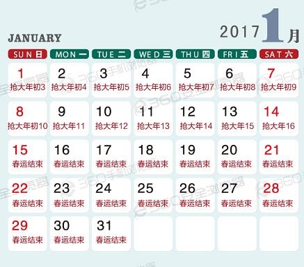 据此推算,2017年最难抢票时间将出现在腊月廿八,其次是腊月廿四和腊月廿七。鉴于腊月廿四为周末,和大中专院校寒假日期较为接近,学生、务工人员、部分白领群体等都可能选择这个时间提前回家,腊月廿四将会出现第一个抢票高峰,也使得2017年春运将出现抢票双高峰。
