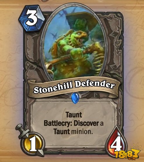 中立蓝卡 嘲讽。战吼:发现一个嘲讽随从