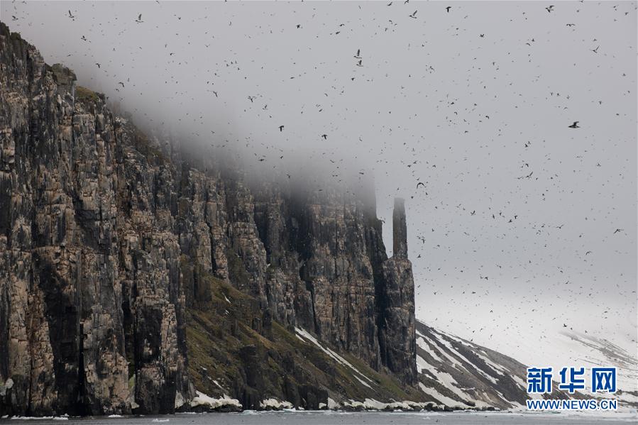 这是2014年7月5日在挪威斯瓦尔巴群岛拍摄的一处海鸟栖息地。 新华社记者戴天放 摄
