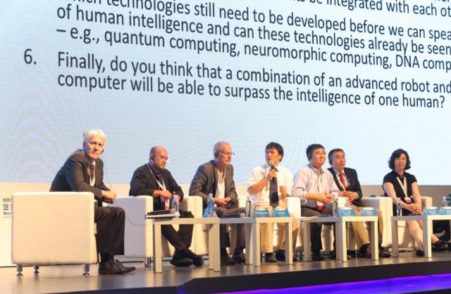 对话期间,各位专家首先就机器人智能意识问题分别发表了观点。孙富春认为,人类智能当中最关键的元素应该是人和外界交互的能力。张丹华则认为语言、逻辑、身体、互动、自我感知和自然的联系,是人类智能的核心。缺少这些能力的机器人,难以被称为真正的智能,因此,Alois C.Knoll也谈到,六十年代就有了计算机,现在即使计算的能力已经增强并可以实施一些人工智能了,人们也不会说计算机是人工智能。