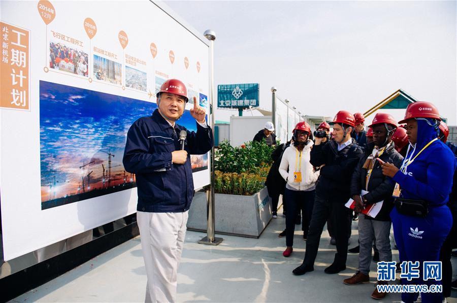 当日,近40家参加十九大新闻报道的中外媒体的60多名记者前往北京大兴采访新机场建设项目。