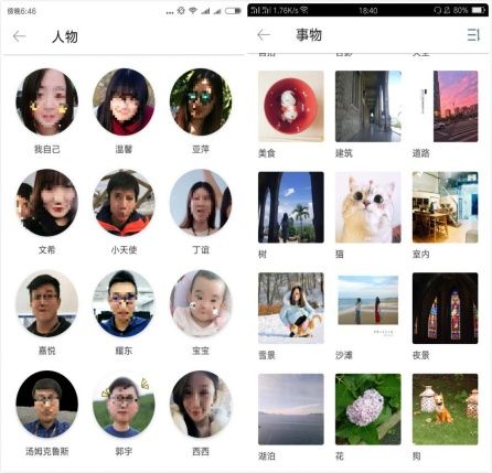 时光相册的智能整理和内容识别功能让管理照片体验更棒。应用在加载图片时就会自动给不同内容的图片打上标签,如“美食、自拍、人物”等等,会根据标签生成各种分类相册,真正做到智能管理照片。
