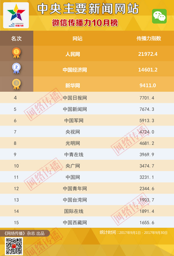 中央主要新闻网站传播力2017年10月榜发布(4)
