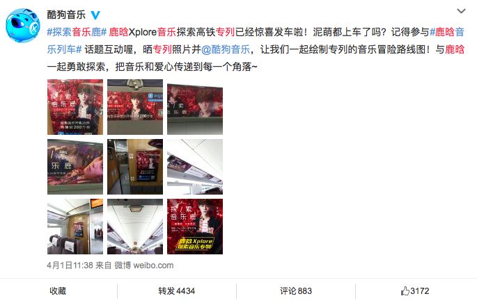 以鹿晗在酷狗音乐发行的系列专辑为例。2017年9月,鹿晗新歌《心率》在酷狗音乐上线,仅用一天时间即迅速攀登酷狗音乐飙升榜第一名。取得如此成绩,除了鹿晗本人的号召力之外,同时也离不开酷狗音乐专辑营销的全新玩法——酷狗音乐除了配合新专辑的营销,在线发布先导预告、概念宣传片、多版本MV、花絮以外,还推出了各种创新的解锁应援互动的新玩法: