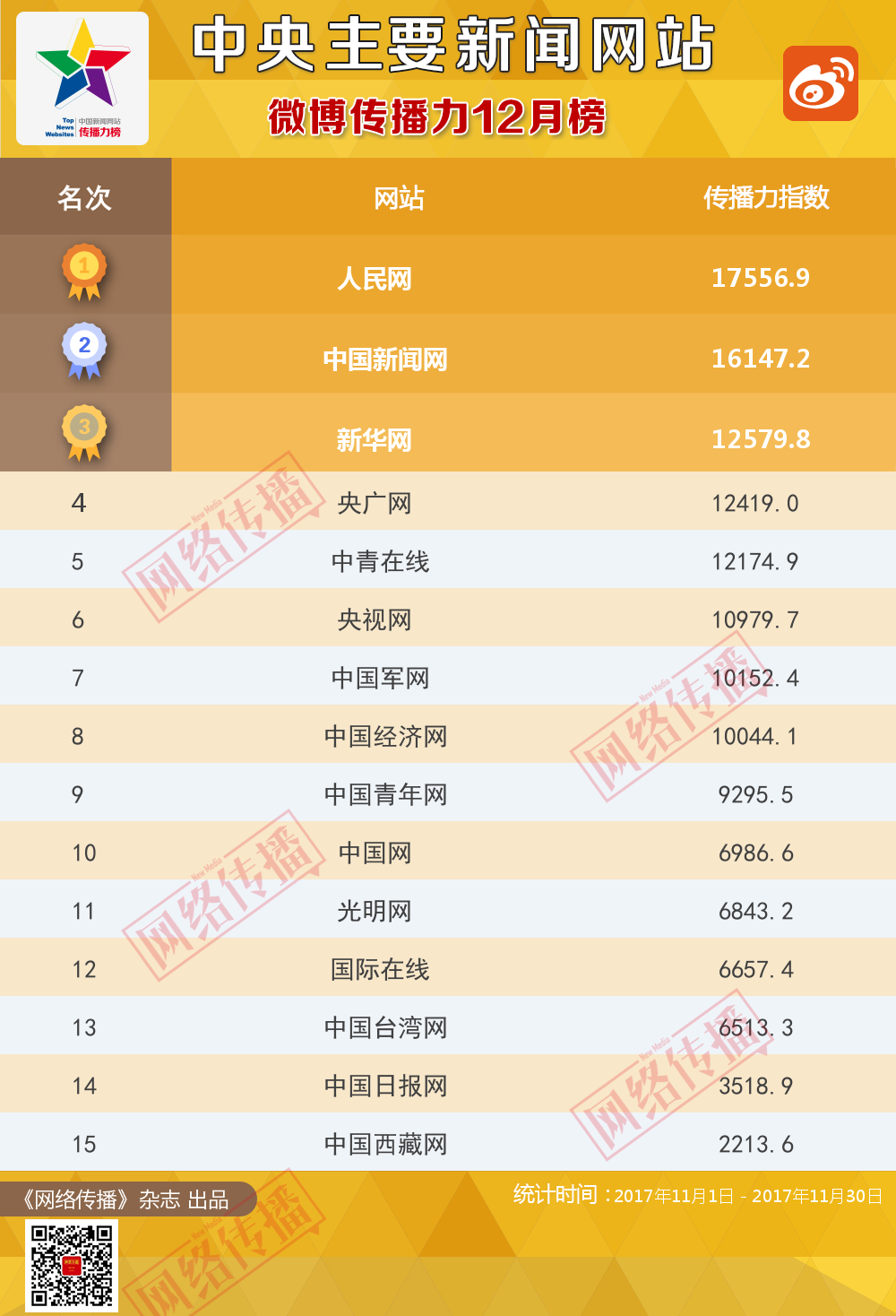 来源标题:中央主要新闻网站传播力2017年12月榜发布
