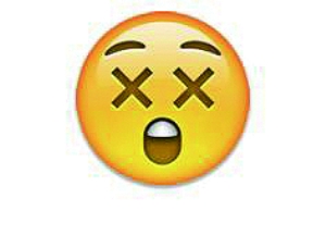 这个两眼冒叉号的表情你可能觉得是“完蛋了”或者“惊讶无比”的意思,但其实这也是表示“眩晕”的表情。