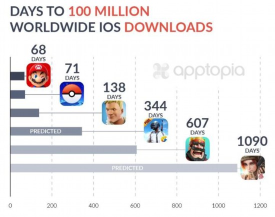 《堡垒之夜》以其出色的游戏质量以及独特的游戏玩法火遍全球,也许你对端游版的《堡垒之夜》已经耳熟能详,但你可能不知道《堡垒之夜》手游也已经井喷式增长,根据数据分析网站Apptopia给出的统计,游戏在iOS上的下载量已经突破了1亿,达到这一里程碑只用了138天。