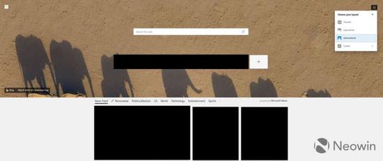 在地址栏的右侧,你可以看到和Chrome浏览器相似的扩展程序和用户头像。该浏览器的默认搜索引擎自然还是Bing,而且会基于Bing当日推荐壁纸设置为新标签页的壁纸。向下滚动会出现个性化定制的Microsoft News,这里有点类似于现有Edge版本。Feed布局可以根据用户偏好进行设置。
