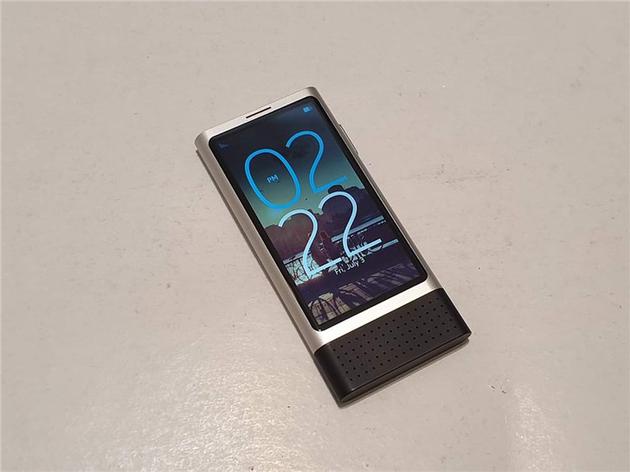 从图中可以看出,该机型不足一个巴掌大,显得十分微小。没有大屏幕,但机身正面的底部有一个巨大喇叭:整个黑色塑料部分是一个扬声器。值得一提的是,诺基亚在其中加入了Z Launcher安卓启动器。