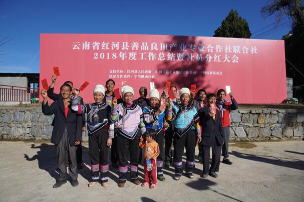 图为:三农合伙人“善品公社”联合字节跳动扶贫为红河县村民分红