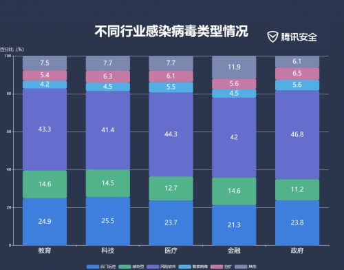 (图:不同病毒类型在各行业的分布情况)
