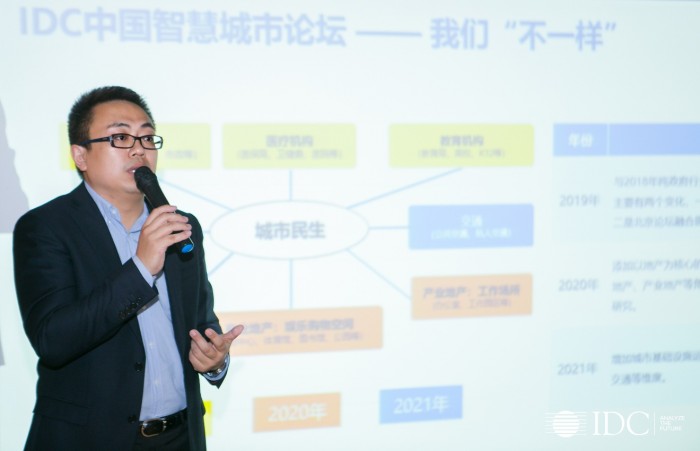 IDC中国助理研究总监闫海伦先生为现场嘉宾分享了双城同纬不一样的智慧城市分论坛。