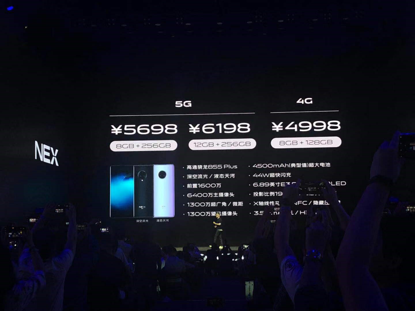 价格方面,NEX 3 5G版提供8G+256G、12G+256G两个版本,价格分别对应5698元和6198元;NEX 3 4G版提供8G+128G版本,价格为4998元。