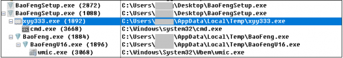 下载并运行携带“幽虫”的激活工具后,首先会释放一个xyy333.exe,xyy333.exe,紧随其后木马驱动就会释放并加载。