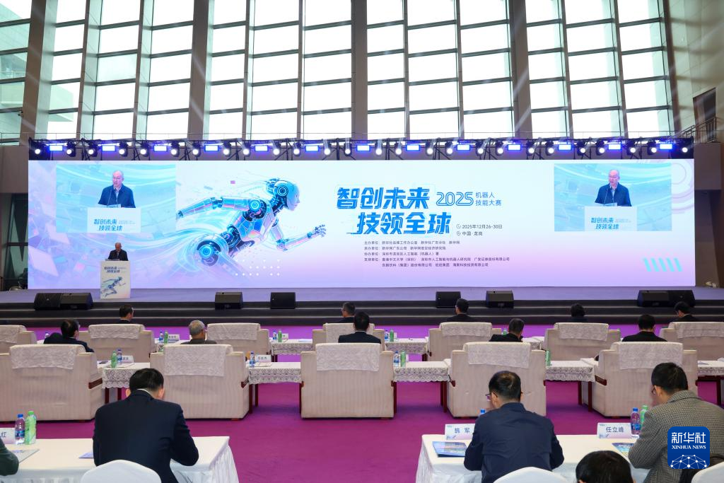 12月26日,嘉宾在2025机器人技能大赛开幕式上致辞。新华社记者 梁旭 摄
