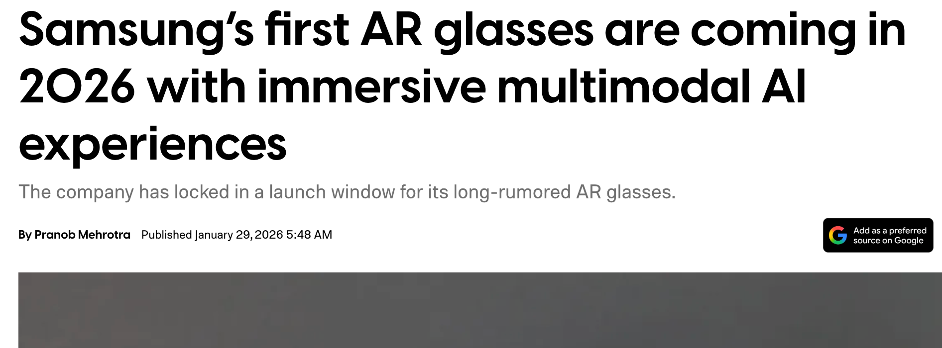 1月30日消息,据Digital Trends报道,三星移动体验执行副总裁Seong Cho近日在技术分享会上正式确认,三星将于2026年发布新一代AR眼镜,旨在通过突破性产品形态与沉浸式多模态AI功能,重新定义消费级可穿戴设备市场。